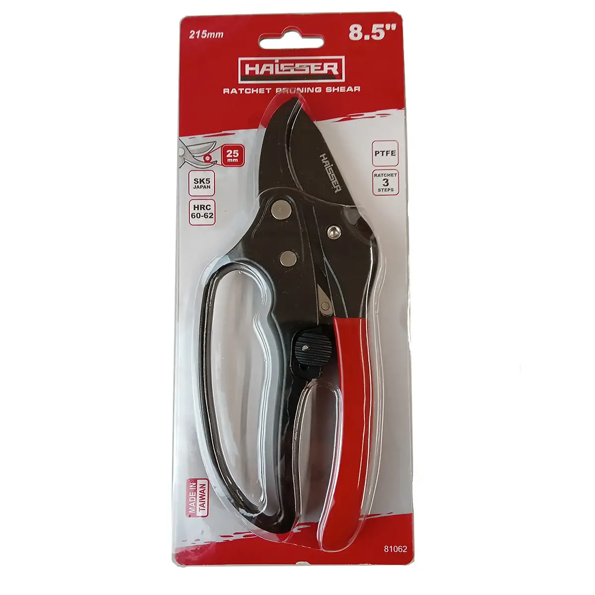 Секатор садовий 215 мм з храповим механізмом Haisser 81062 – якісний та витривалий у роботі секатор. Через широку сферу застосування секатор залишається одним з основних інструментів у саду та городі. Сезонне або санітарне обрізання рослин, також з його допомогою підрізають коріння при пересадці рослин і т.д. Виконаний із високоякісних та безпечних матеріалів – загартованої сталі з тефлоновим покриттям.