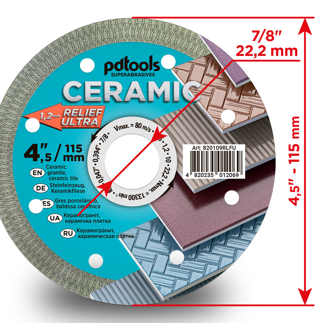 Круг алмазний відрізний pdtools 820205RLFU 1A1R 125*1.2*10*22.2 RELIEF ULTRA