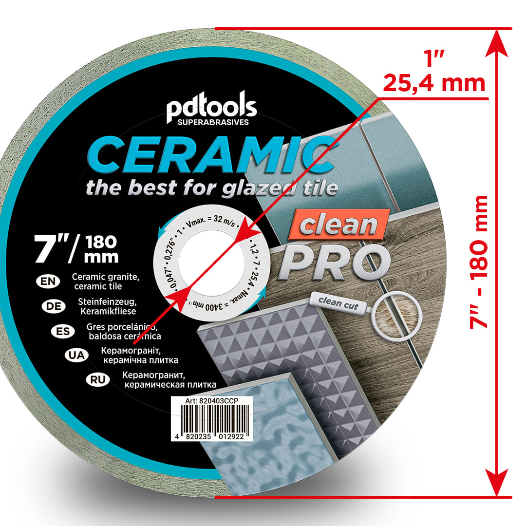ГоловнаІнструменталкаалмазні дискиКруг алмазний відрізний pdtools 820403CCP 1A1R 180*1.2*7*25.4 CERAMICS CLEAN PRO