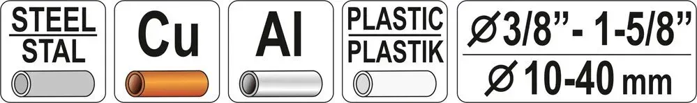 Роликовий різак з гвинтовим ножем тиску. Для різання сталевих, мідних, алюмінієвих і пластикових труб в діапазоні від 10 до 40 мм. Різак оснащений двома обертовими притискними роликами для кращого напрямки труб. Дисковий ніж з правильно підібраним профілем виготовлений з підшипникової сталі. Це забезпечує дуже довгий термін служби різака і високу точність різання. Крім того, регулювання тиску шнека дозволяє точно регулювати силу різання.