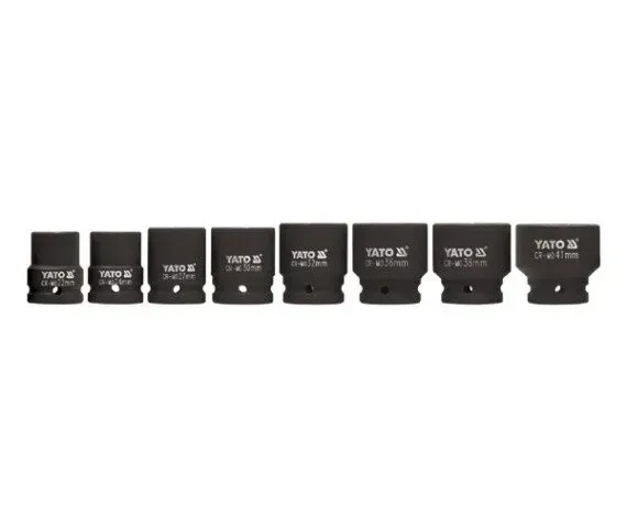 Набір ударних головок YATO призначений для затягування/розбирання кріплення з ударом (пневматичні гайковерти, ударні ключі). Інструмент виготовлений із високоміцної сталі хромомолібдену CrMo SCM-440. Молібден зміцнює сталь.