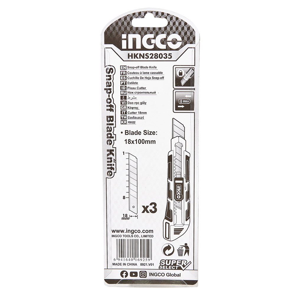 ГоловнаІнструменталканожі сегментні, будівельніНіж сегментний 18мм 3 леза INGCO Super Select HKNS28035