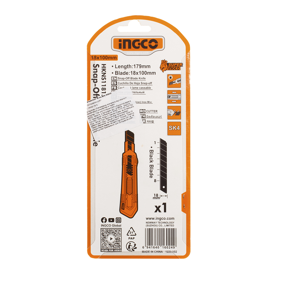 | Розмір леза | 18×100 мм |