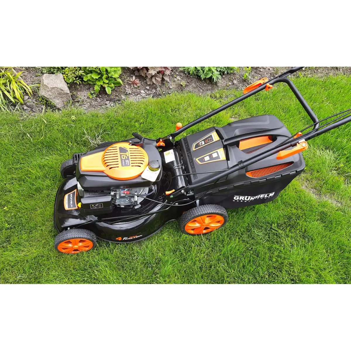Самохідна бензинова газонокосарка Grunhelm, легко впорається з великим об’ємом трави, та зробить Ваш газон відмінним.