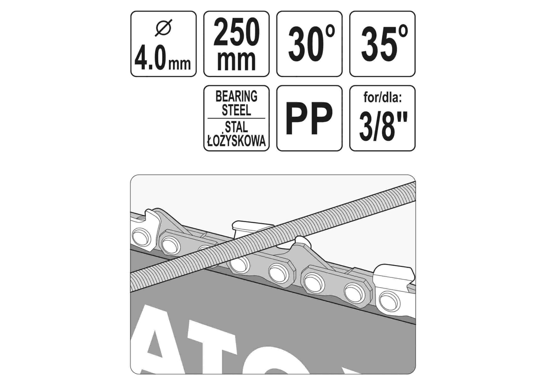 НАПРАВЛЯЮЧА З НАПИЛЬНИКОМ ДЛЯ ЗАТОЧУВАННЯ ЛАНЦЮГІВ ПІД КУТАМИ 30°/35° YATO YT-85035